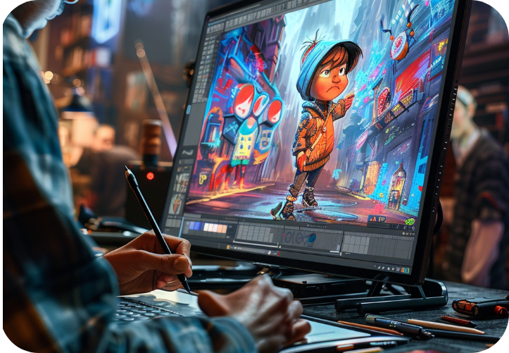 We use a rigorous artist selection process, regular quality checks, and state-of-the-art collaboration tools to maintain high standards in remote storyboard production.
